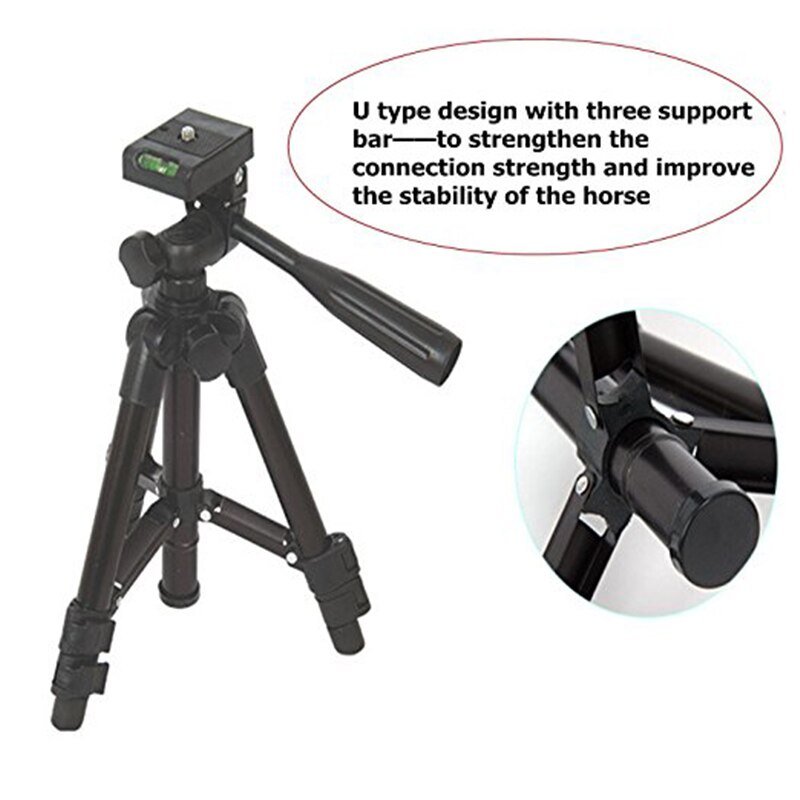 Aluminum lightweight tripod stand, ultra compact ,sturdy and durable.Non-slip rubber feet