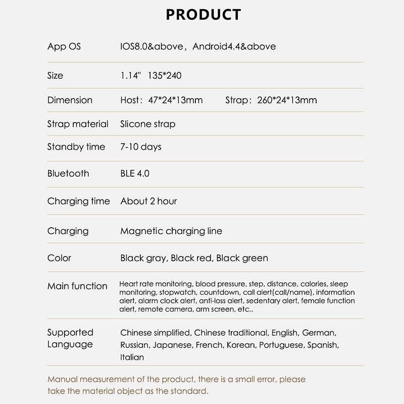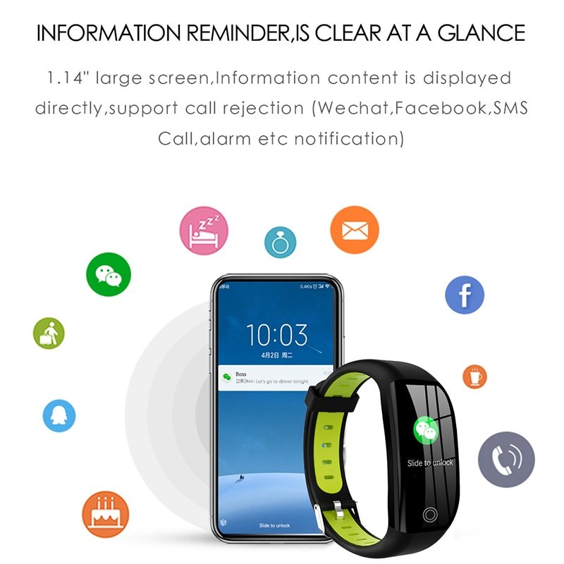 sleep monitoring, call reminder (caller name/caller ID), female function reminder, alarm reminder, anti-lost, camera remote control, etc.