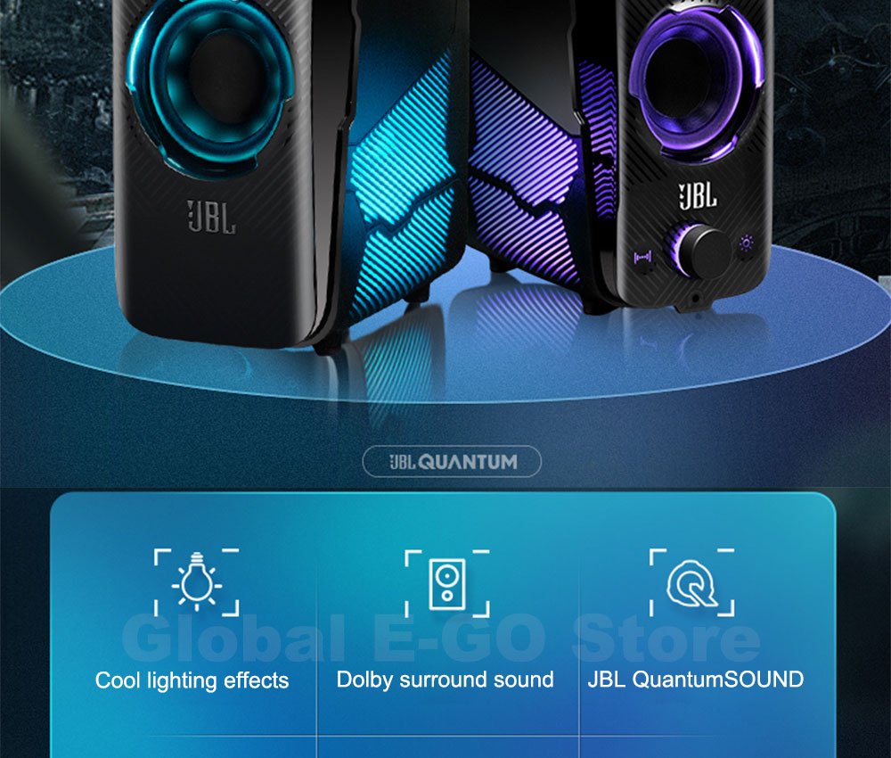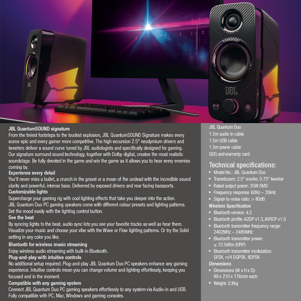 JBL QUANTUM DUO PC Gaming Bluetooth Speakers Noise Cancellation Surround Sound with Colorful Light for PC/Mac/Nintendo Switch